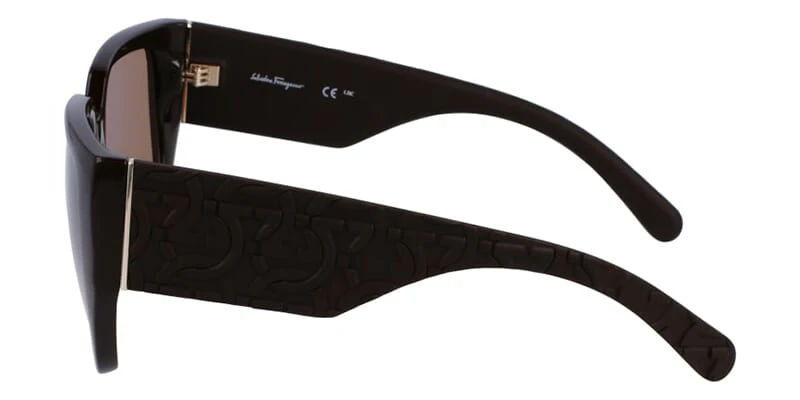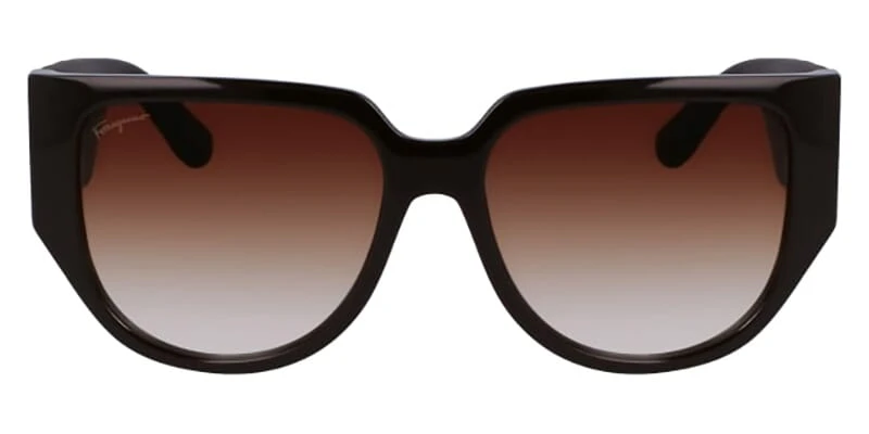This wayfarer Salvatore Ferragamo sunglass comes in a dark brown frame with brown lenses.