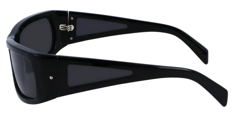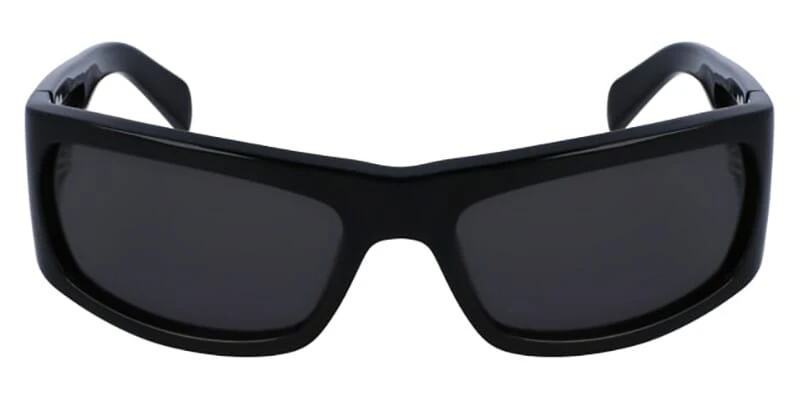 This wraparound Salvatore Ferragamo sunglass comes in a black frame with grey lenses.