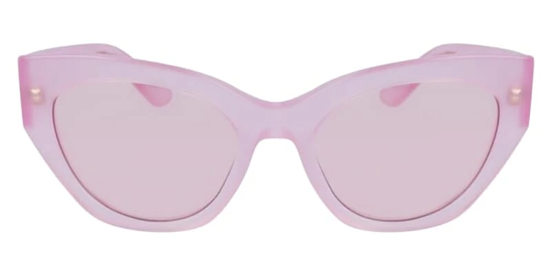 This cat eye Salvatore Ferragamo sunglass comes in a opaline pink frame with pink lenses.