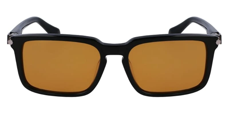 This square Salvatore Ferragamo sunglass comes in a black frame with brown lenses.