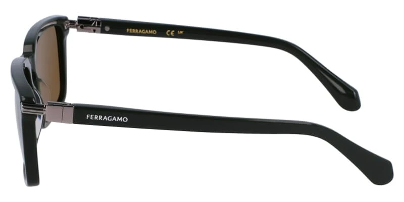 This square Salvatore Ferragamo sunglass comes in a dark green frame with brown lenses.