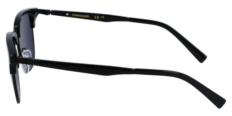 This round Salvatore Ferragamo sunglass comes in a black frame with grey lenses.