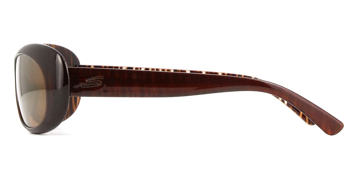 This cat eye Serengeti sunglass comes in a bronze zebra frame with brown polarised photochromic lenses.