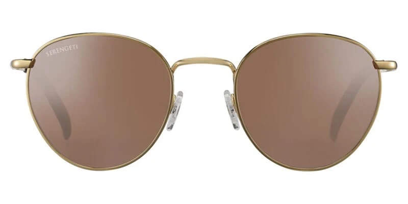 This round Serengeti sunglass comes in a shiny bold gold frame with mineral polarized drivers gold cat 3 to 3 lenses.