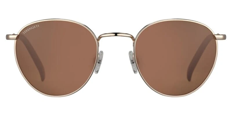 This round Serengeti sunglass comes in a shiny rose gold frame with mineral polarized drivers cat 2 to 3 lenses.