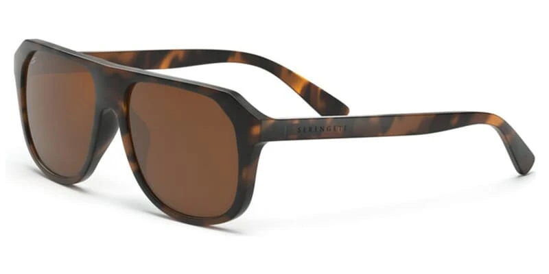 This square Serengeti sunglass comes in a matte tortoise frame with saturn polarized drivers gold cat 2 to 3 lenses.