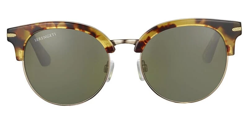 This square Serengeti sunglass comes in a shiny tort havana with shiny gold frame with mineral polarized cat 3 to 3 lenses.