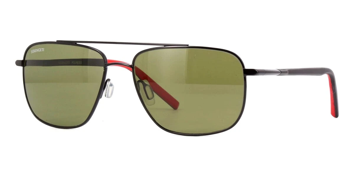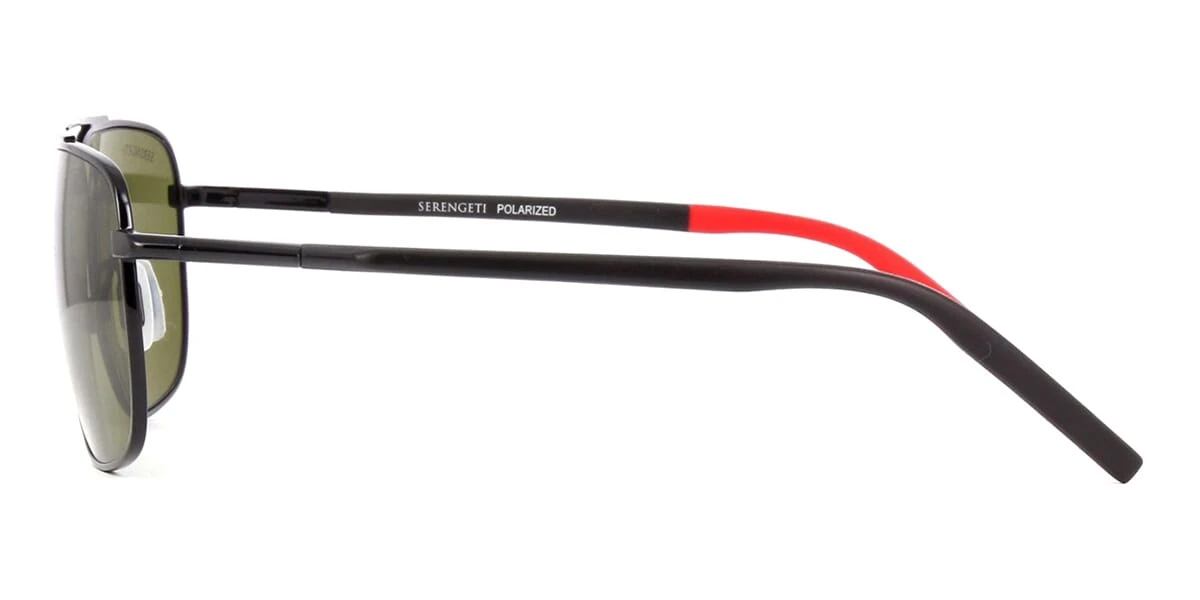 This aviator Serengeti sunglass comes in a shiny black frame with green photochromic polarised phd2.0 mineral lenses.