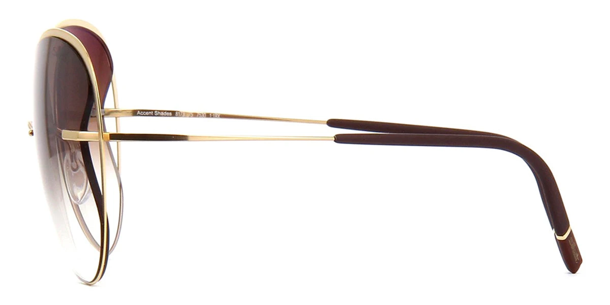 This round Silhouette sunglass comes in a gold and dark brown frame with classic brown gradient lenses.