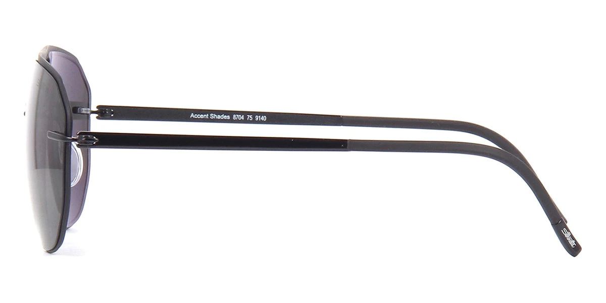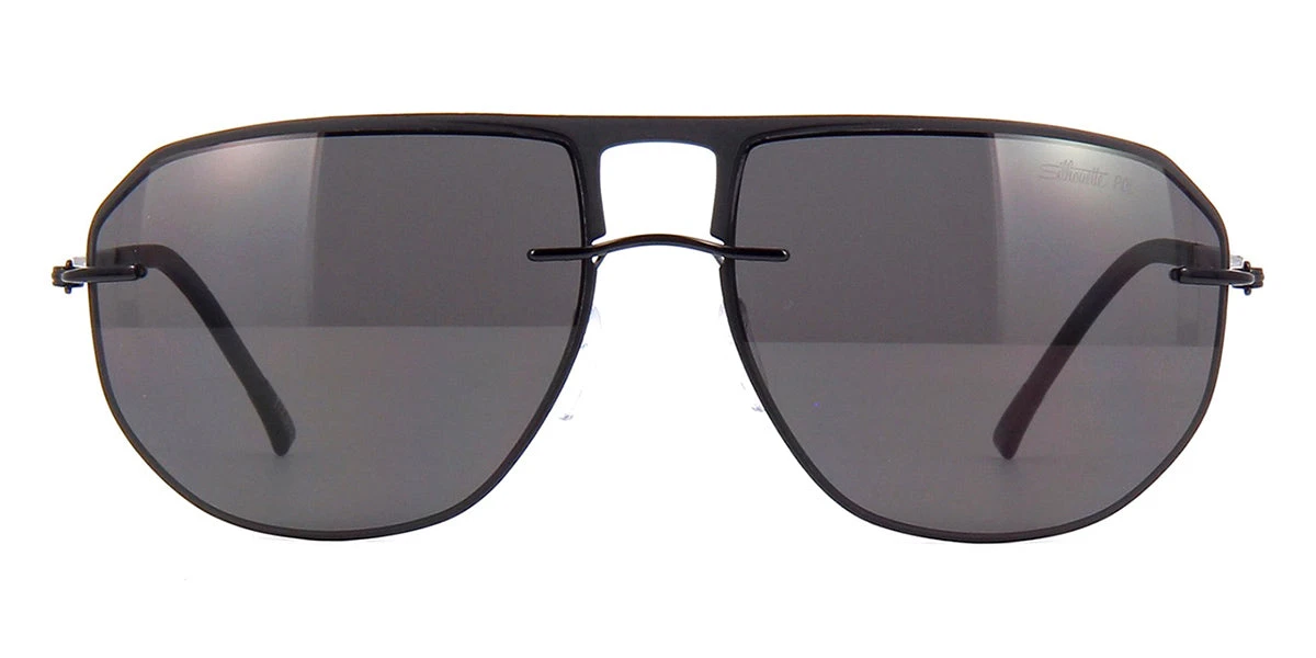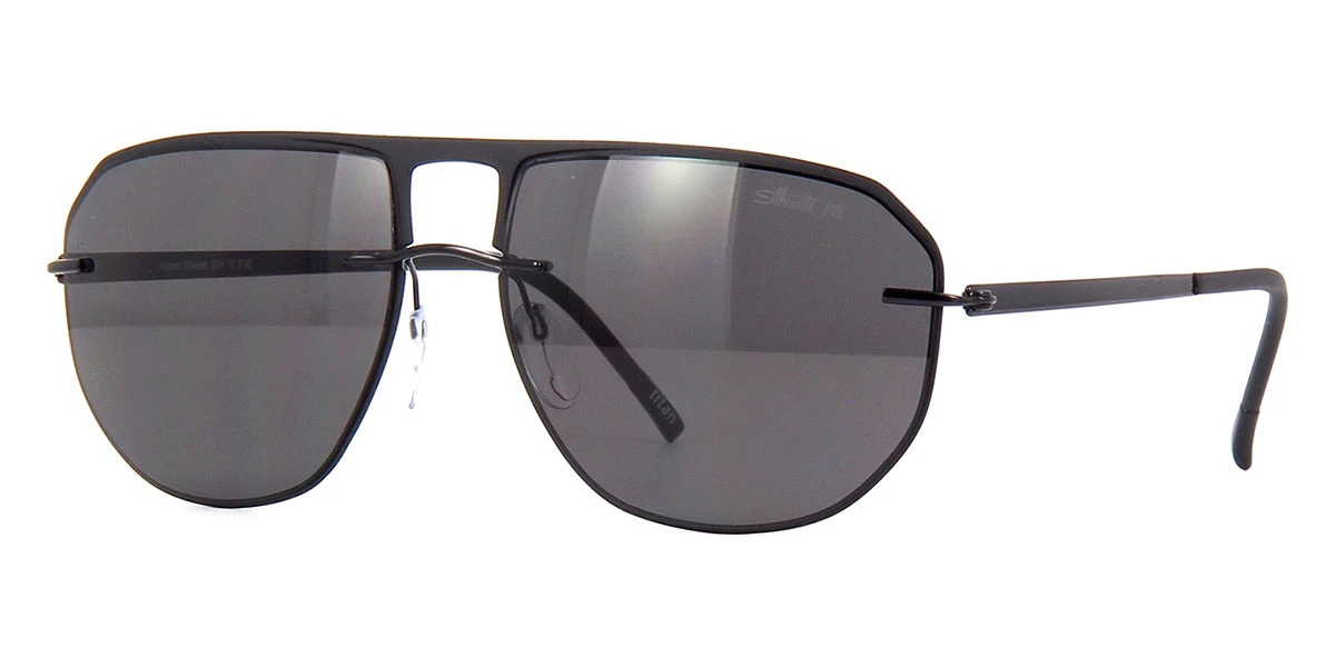 This aviator Silhouette sunglass comes in a matte black and shiny black frame with slm dark grey polarised lenses.
