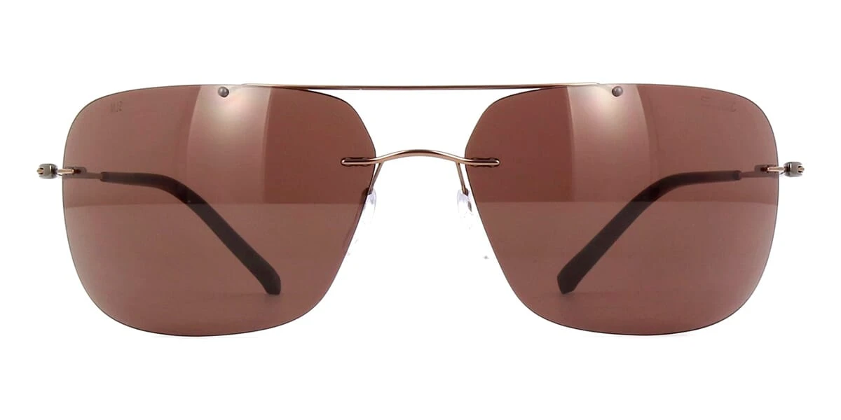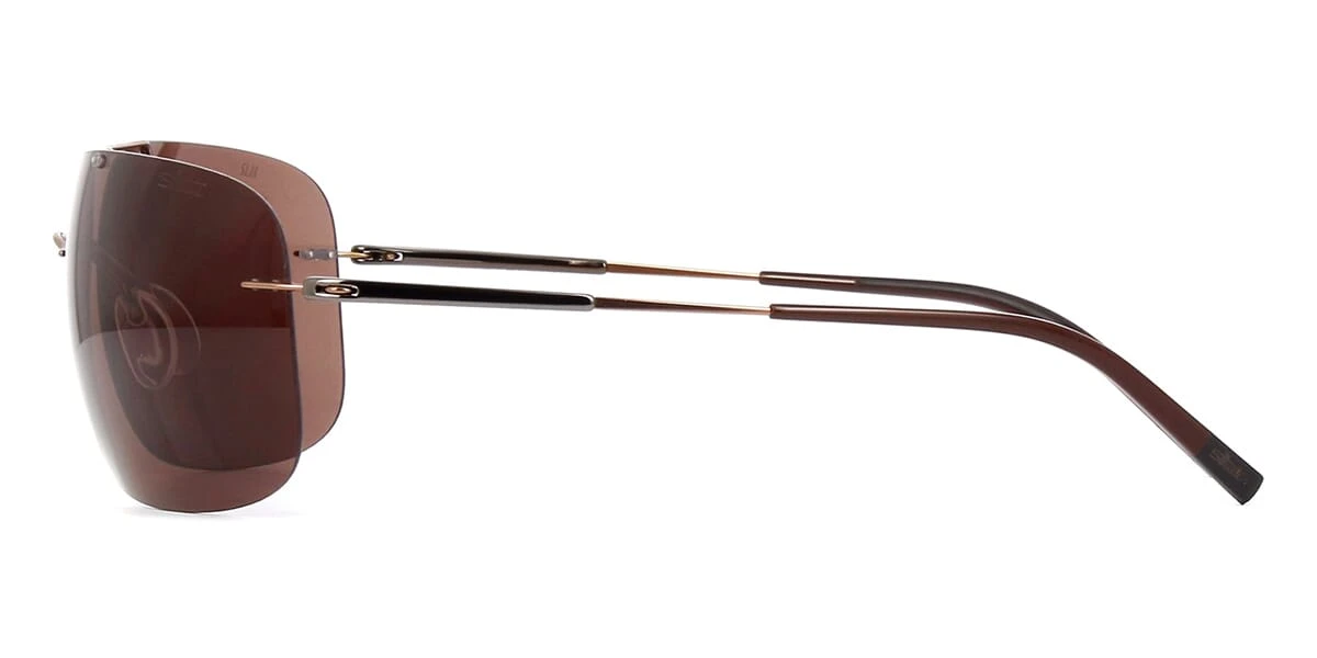 This wraparound Silhouette sunglass comes in a bronze and titanium frame with slm brown lenses.