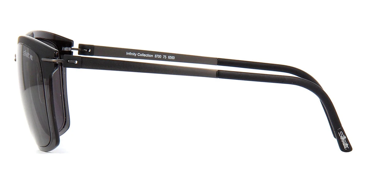 This square Silhouette sunglass comes in a matte grey and grey frame with grey polarised lenses.
