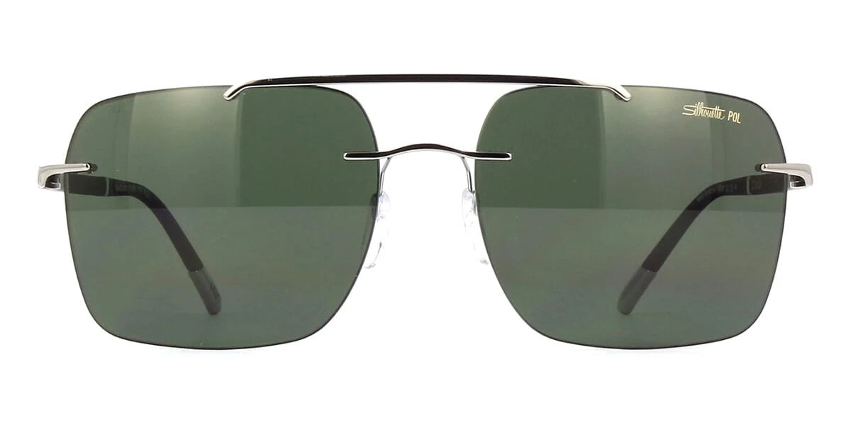 This square Silhouette sunglass comes in a 23kt gold plated ruthenium and matte black rubber frame with green polarised lenses.