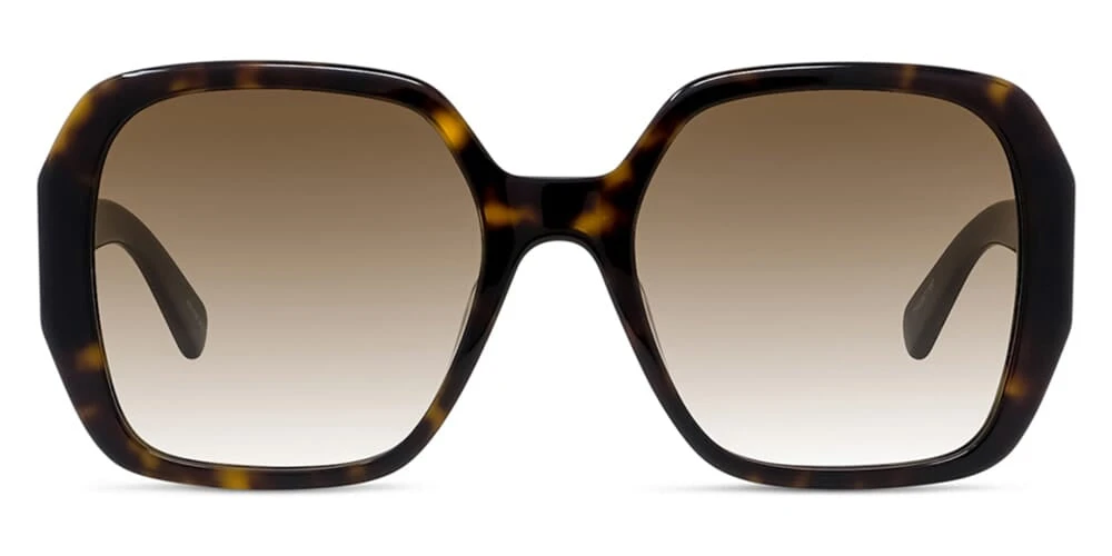 This square Stella McCartney sunglass comes in a shiny dark havana frame with brown gradient lenses.