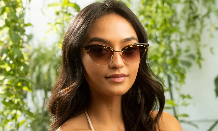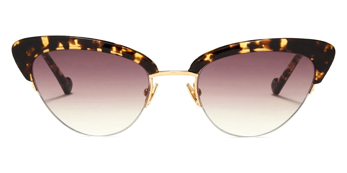 This cat eye Sunday Somewhere sunglass comes in a tokyo tortoise with gold frame with brown gradient cat 2 lenses.