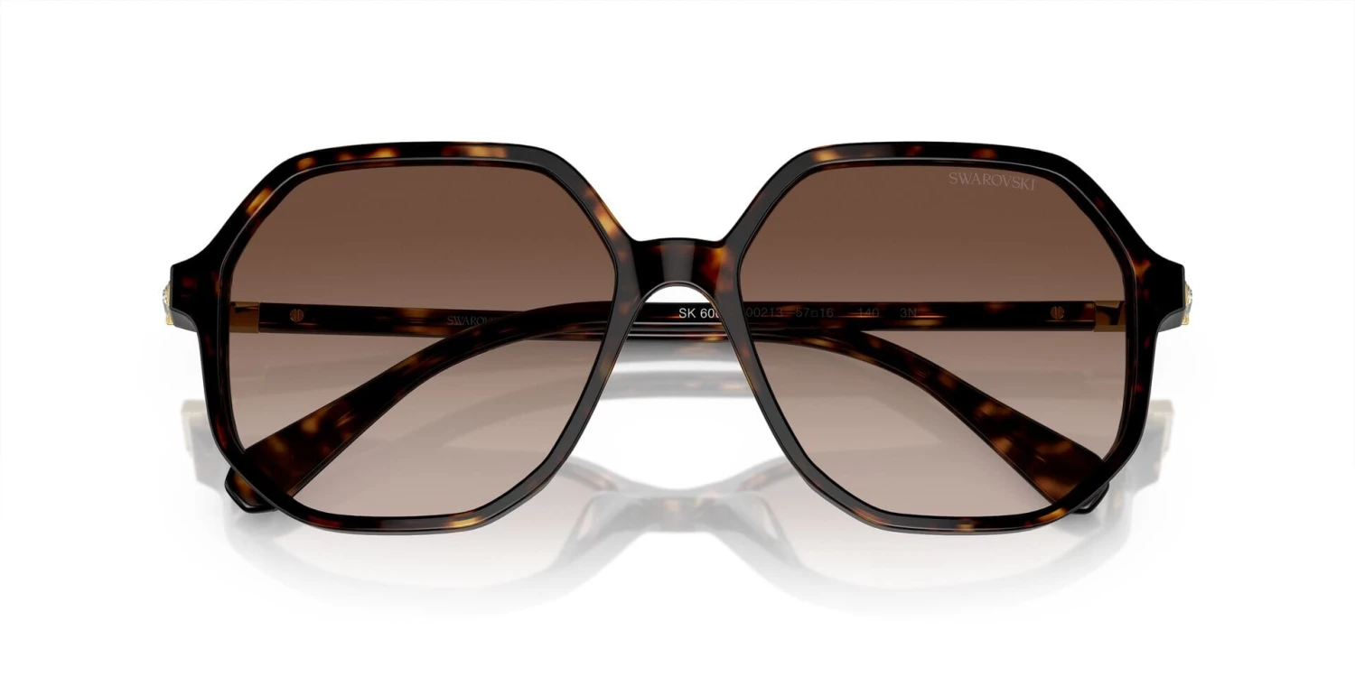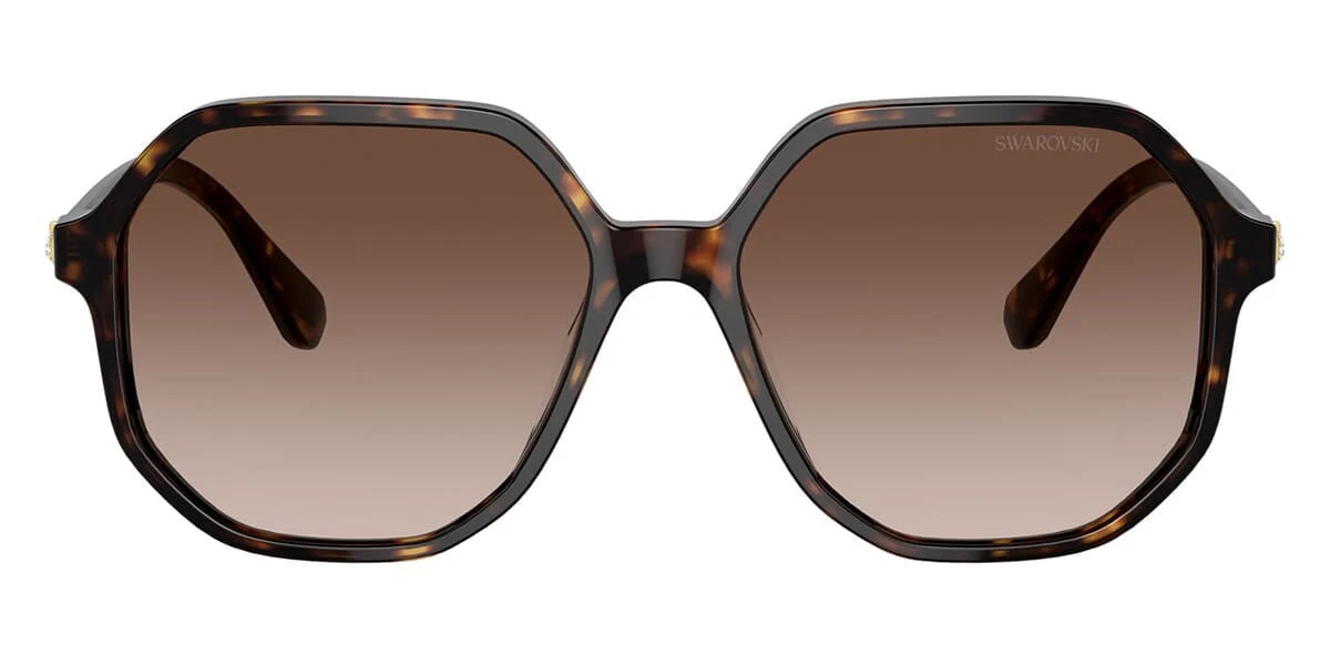 This square Swarovski sunglass comes in a havana frame with brown gradient lenses.