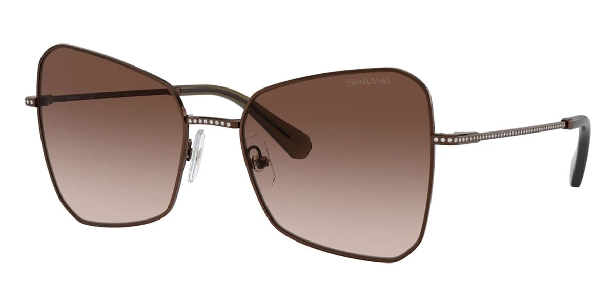 This butterfly Swarovski sunglass comes in a bronze frame with brown gradient lenses.