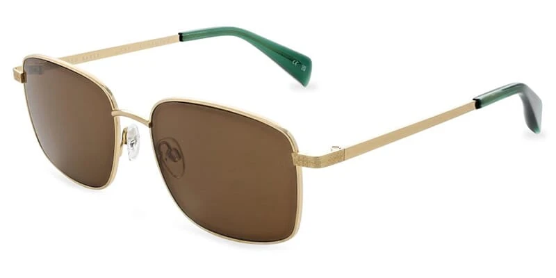 This square Ted Baker sunglass comes in a antique gold frame with brown lenses.