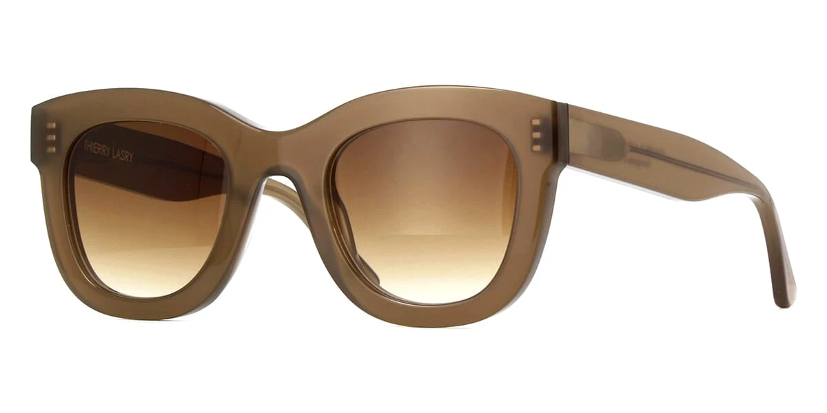 This square Thierry Lasry sunglass comes in a taupe frame with brown gradient lenses.