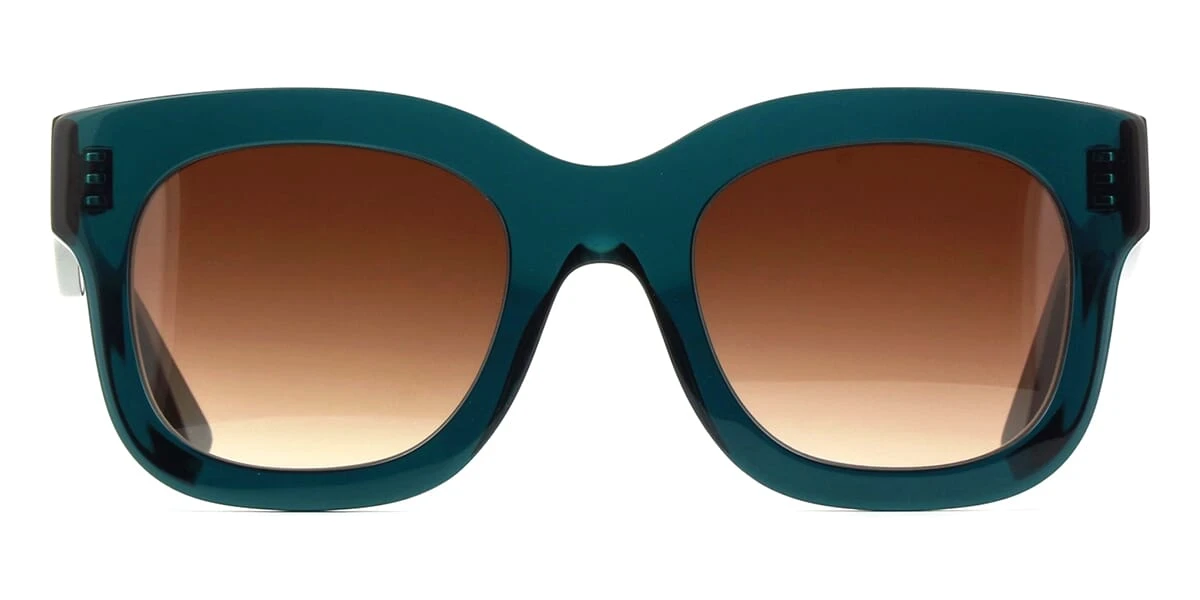 This square Thierry Lasry sunglass comes in a translucent emerald green frame with brown gradient lenses.