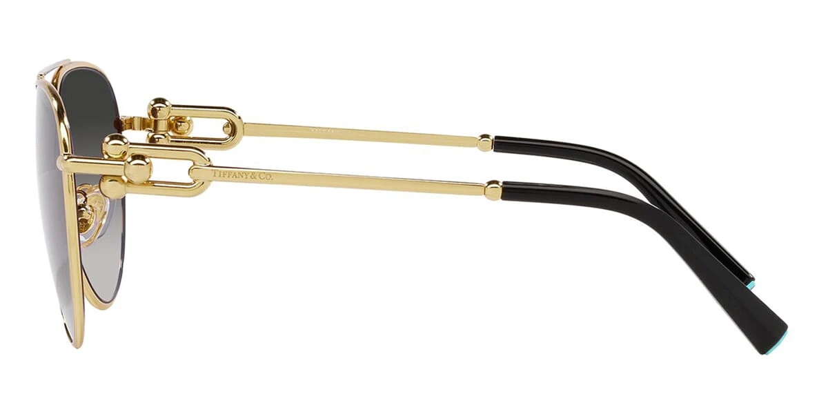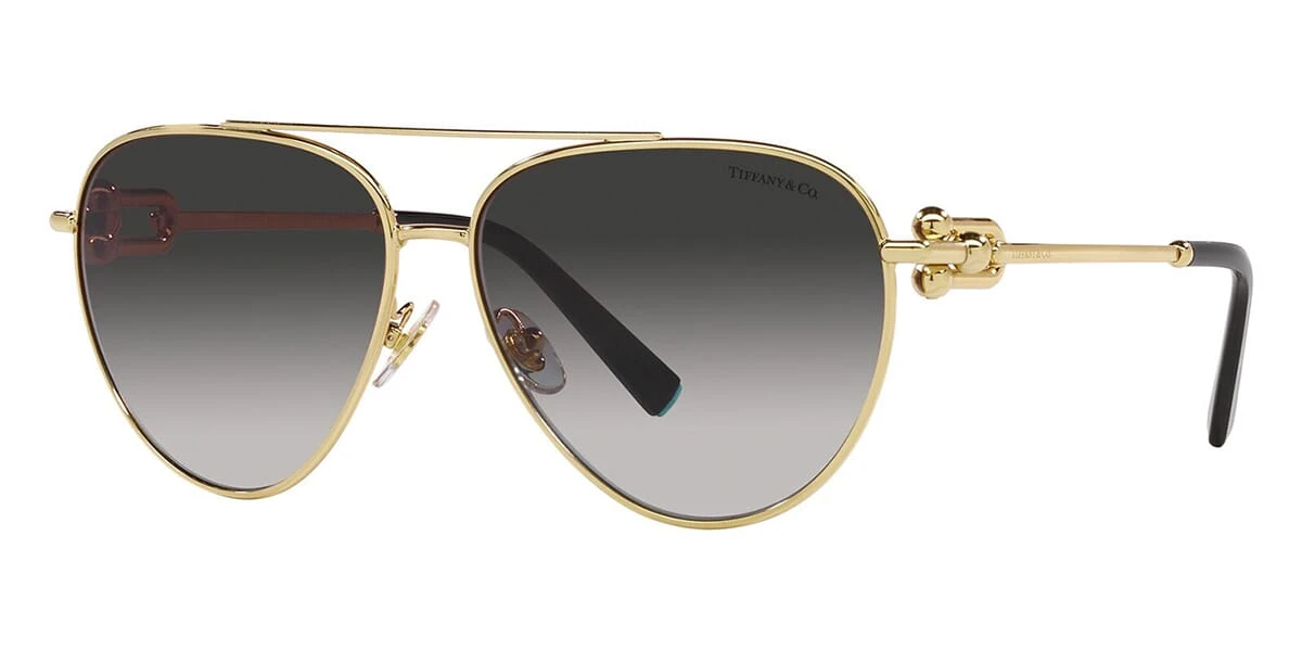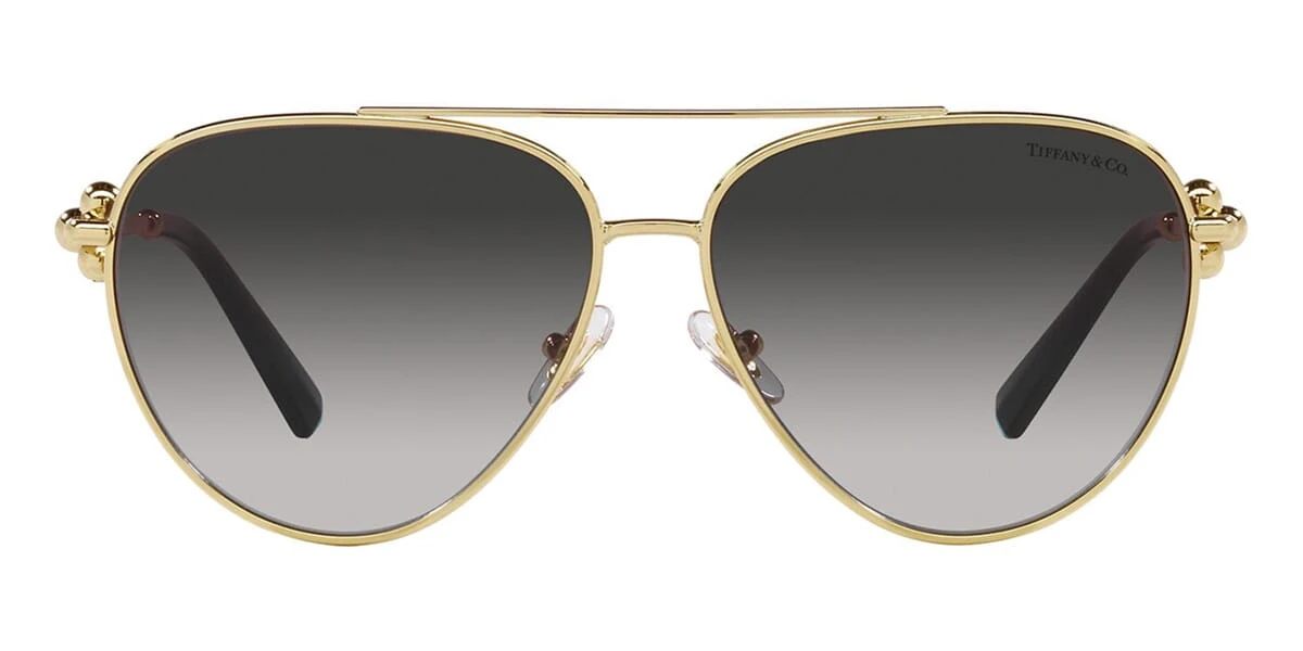 This aviator Tiffany sunglass comes in a gold frame with grey gradient lenses.