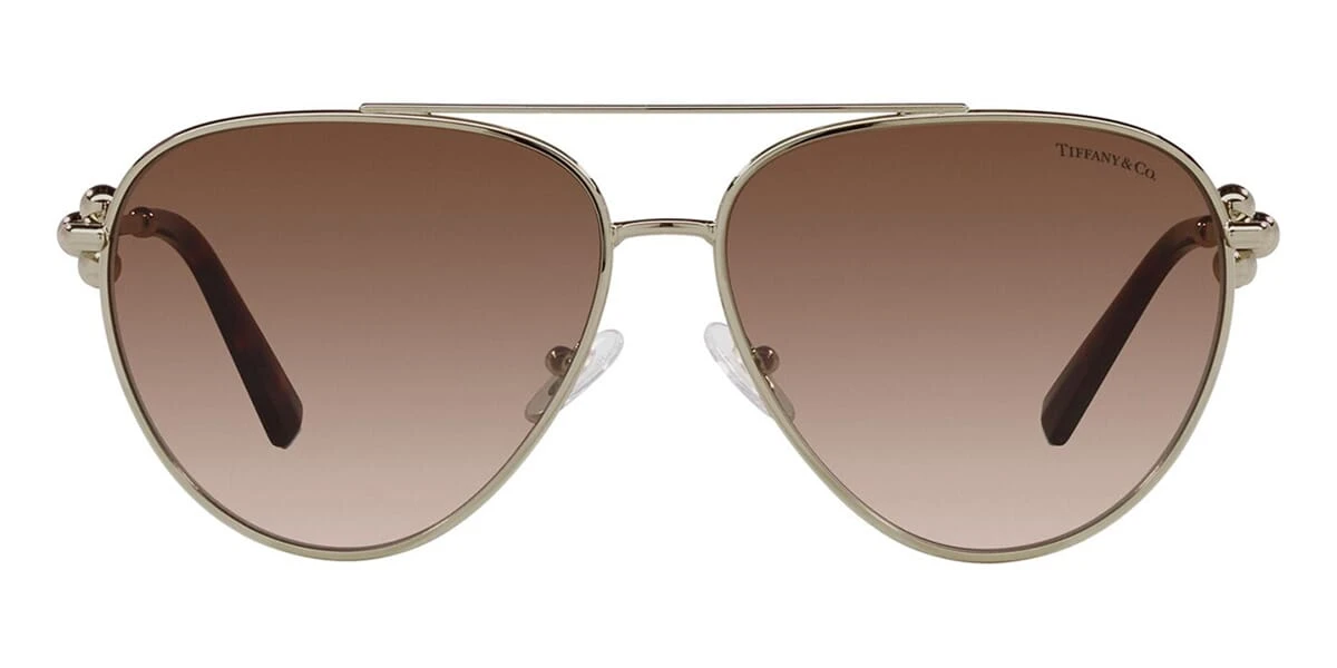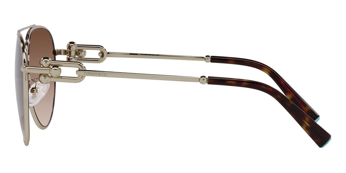 This aviator Tiffany sunglass comes in a pale gold frame with brown gradient lenses.