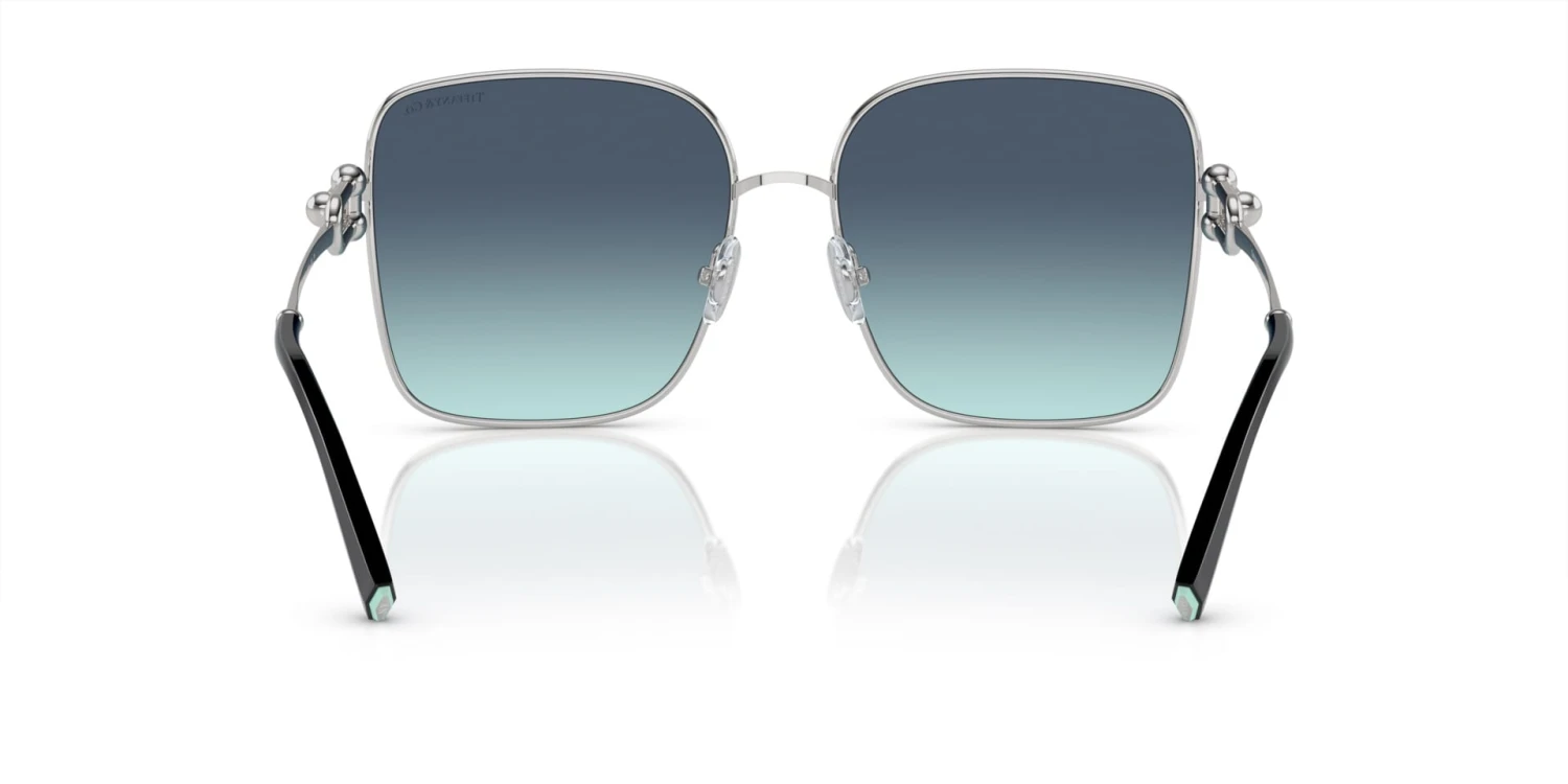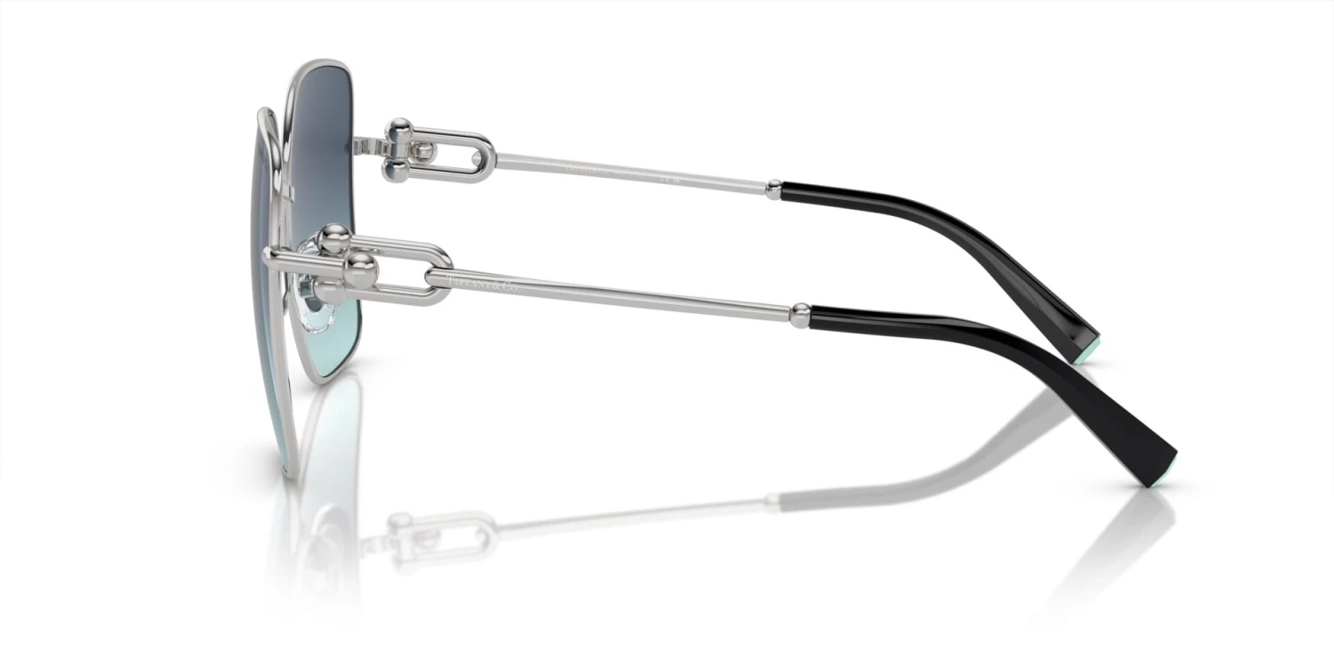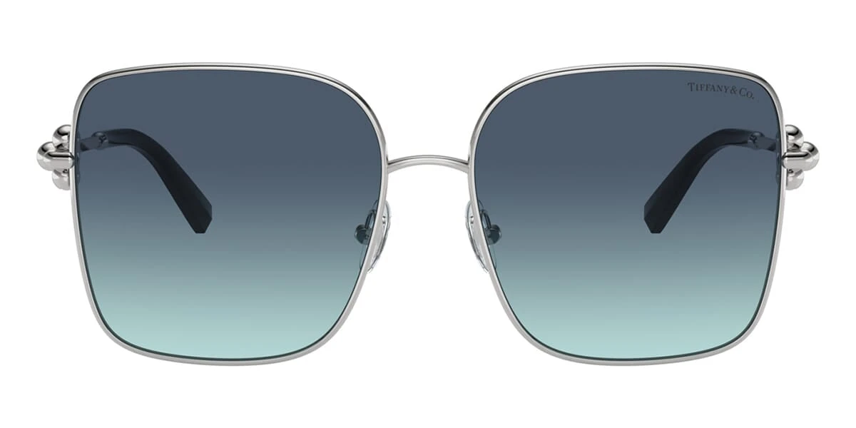 This square Tiffany sunglass comes in a silver frame with azure blue gradient lenses.
