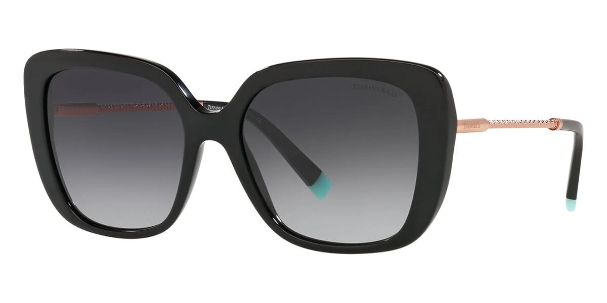 This butterfly Tiffany sunglass comes in a black frame with grey gradient lenses.