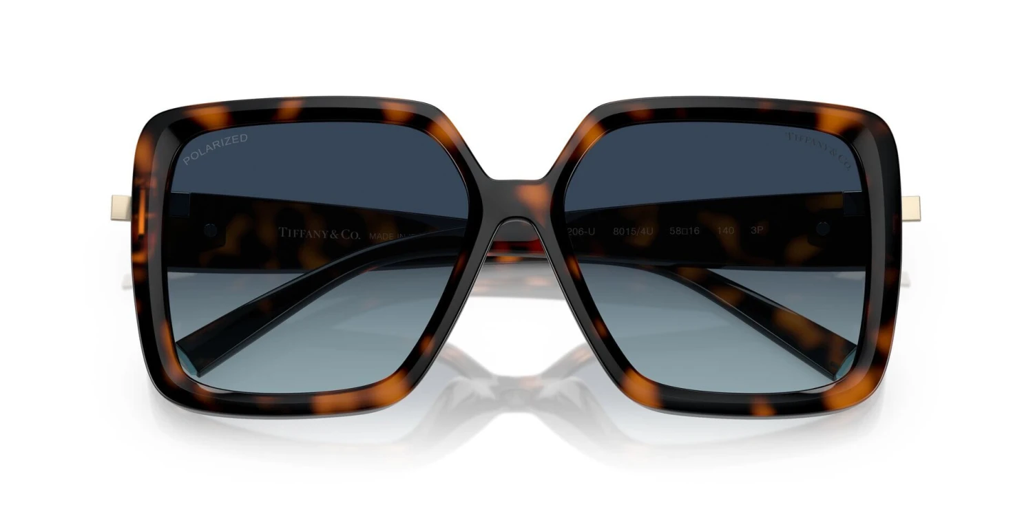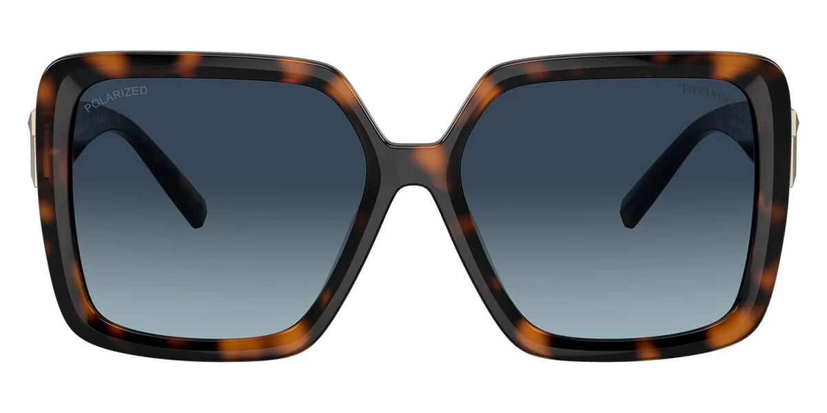 This square Tiffany sunglass comes in a havana frame with dark blue to azure gradient polarised lenses.