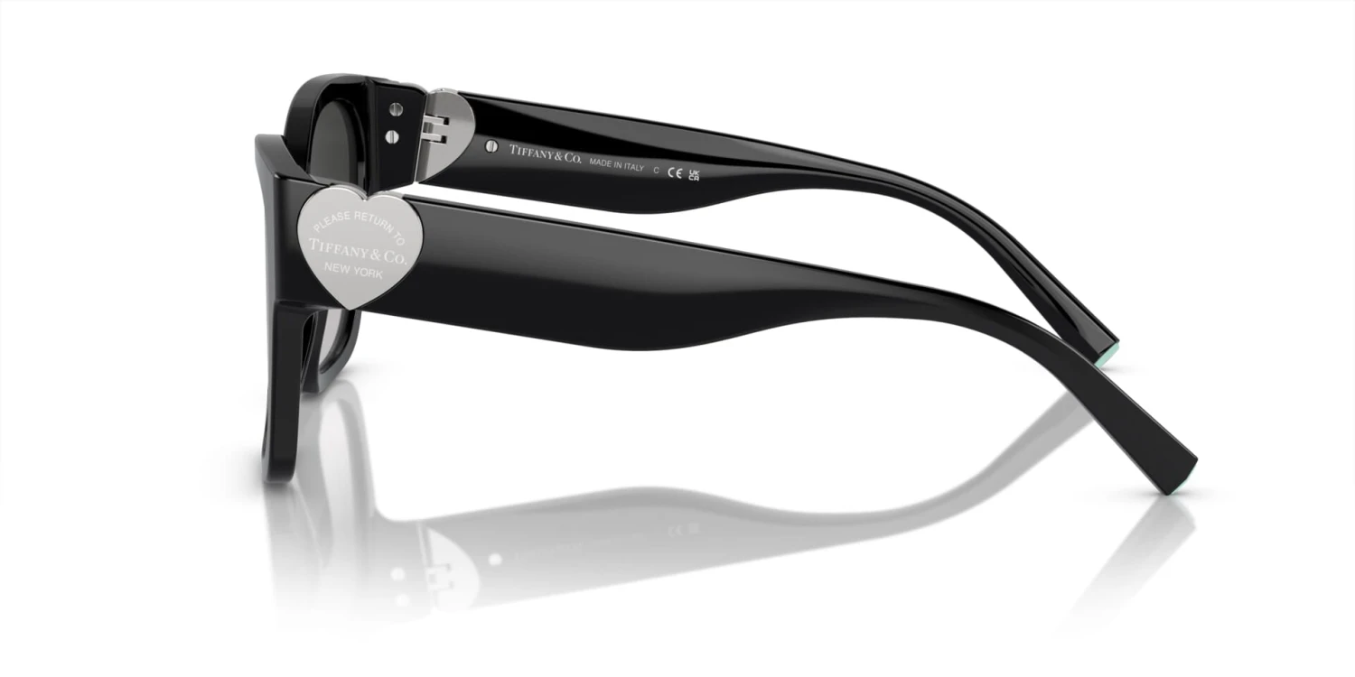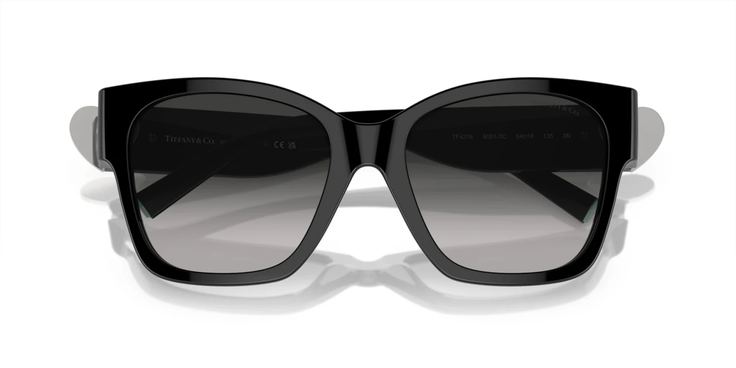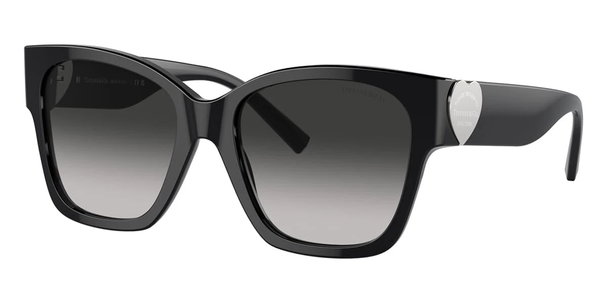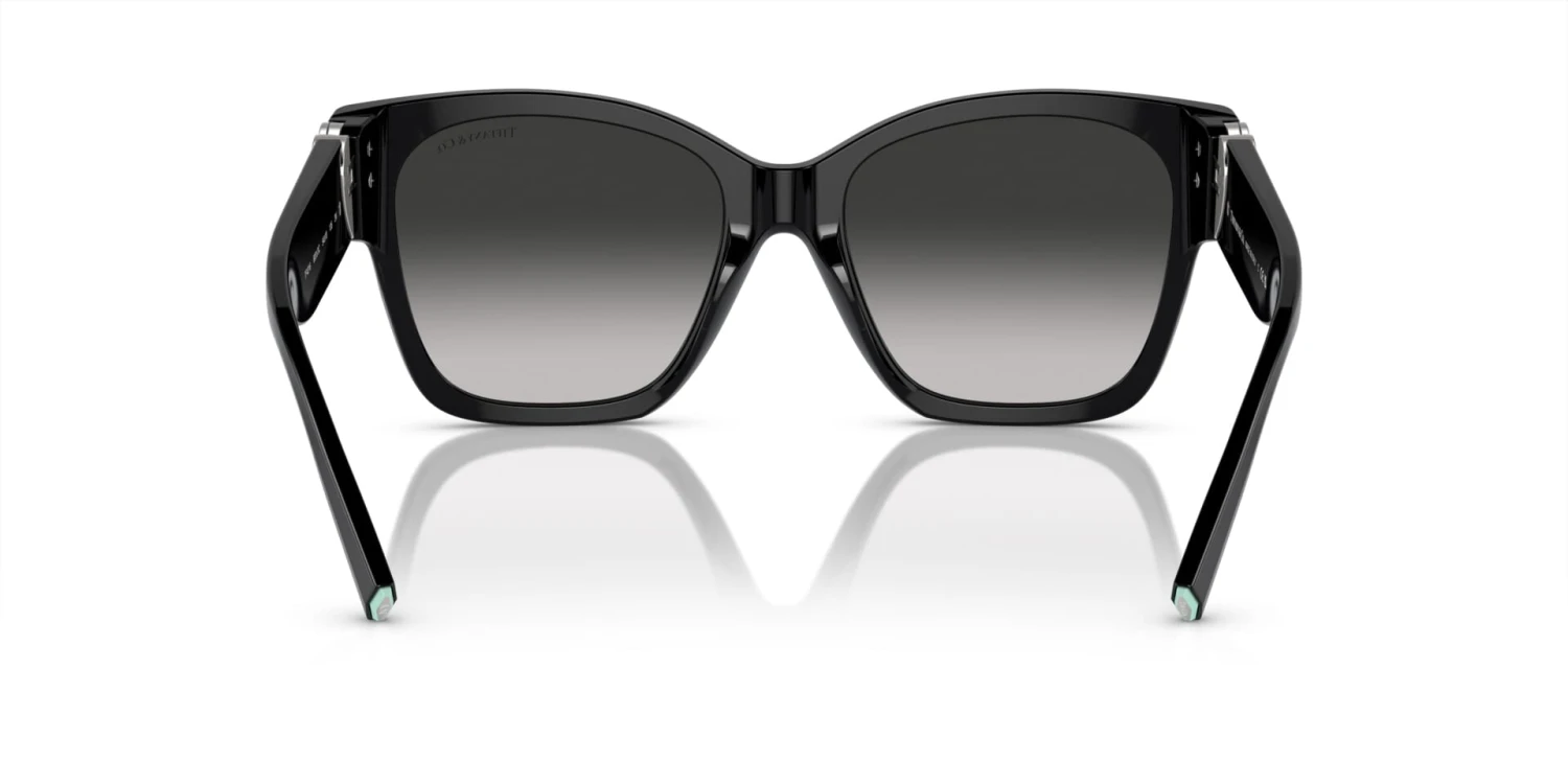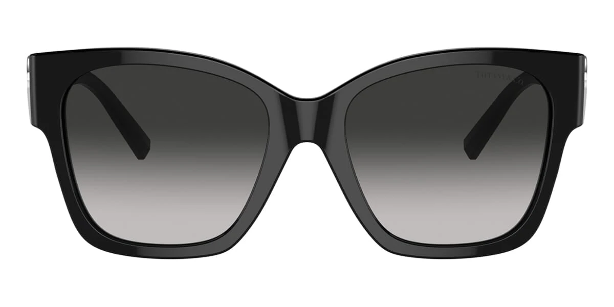 This square Tiffany sunglass comes in a black frame with grey gradient lenses.