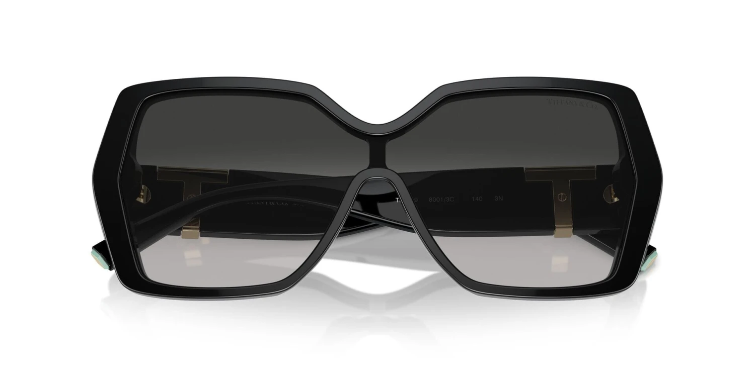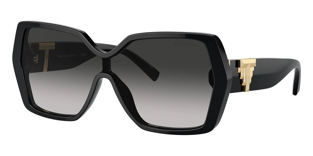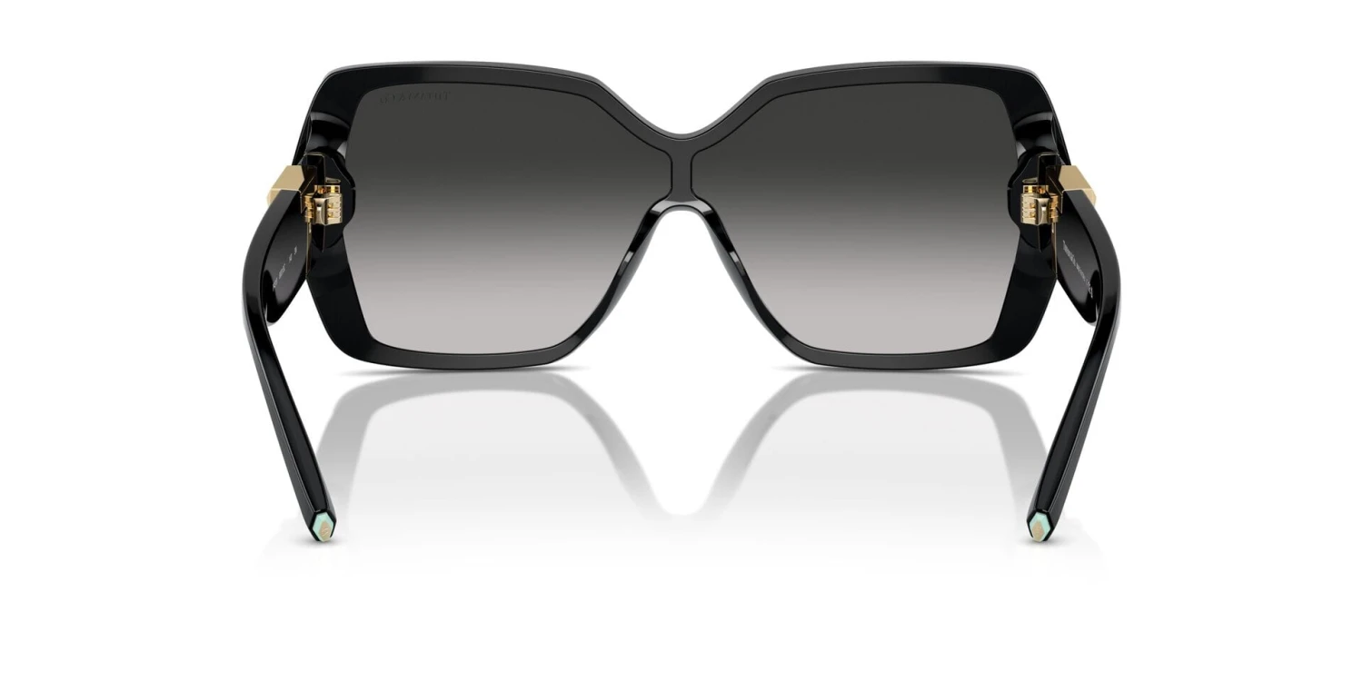 This square Tiffany sunglass comes in a black frame with grey gradient lenses.