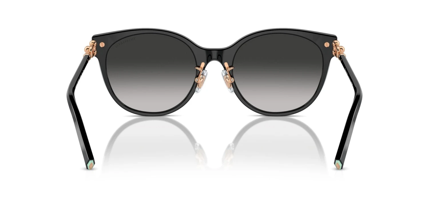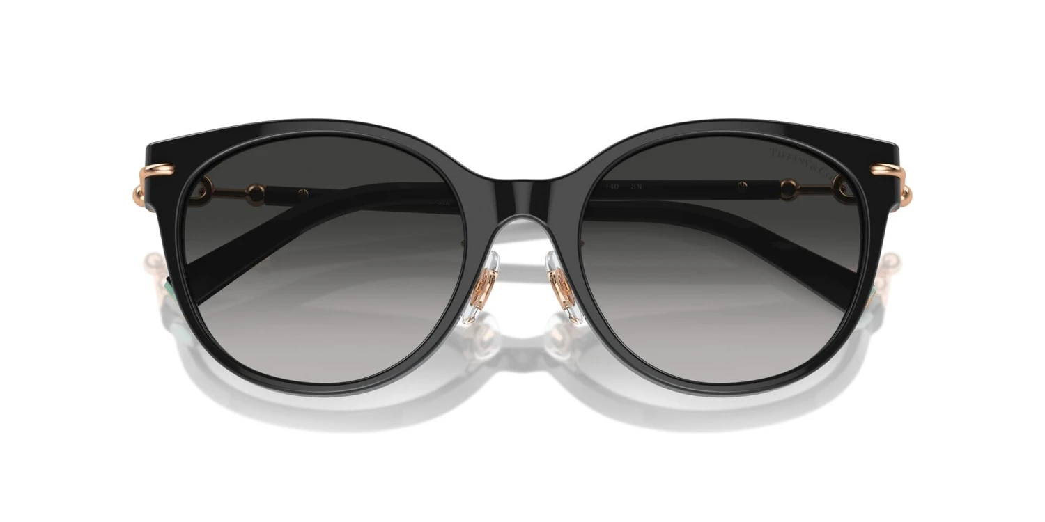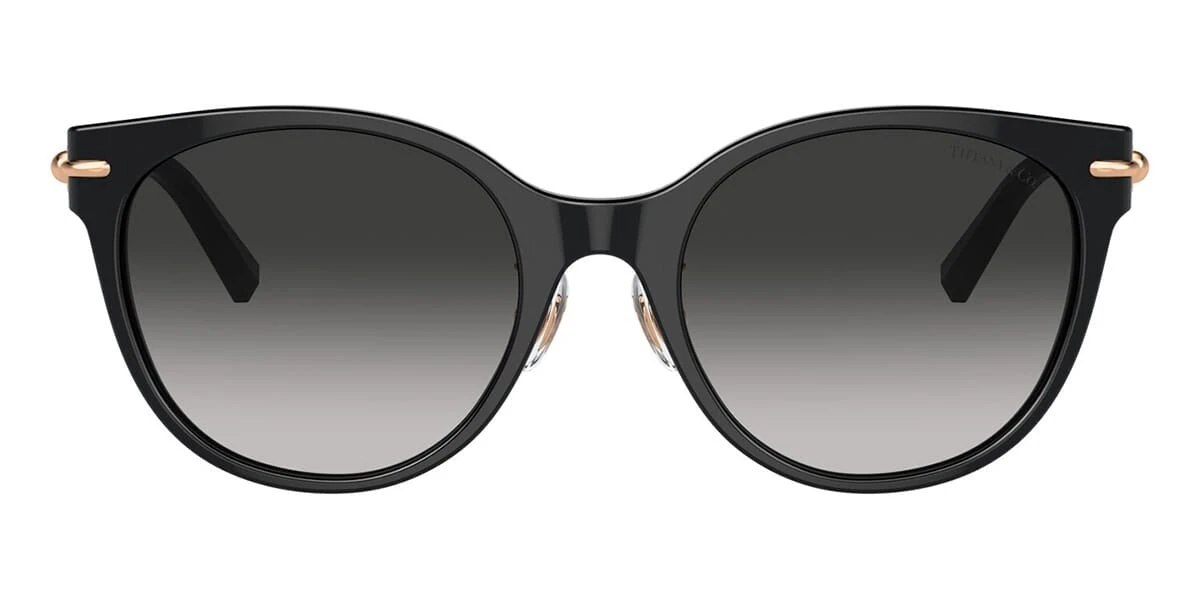 This cat eye Tiffany sunglass comes in a black frame with grey gradient lenses.