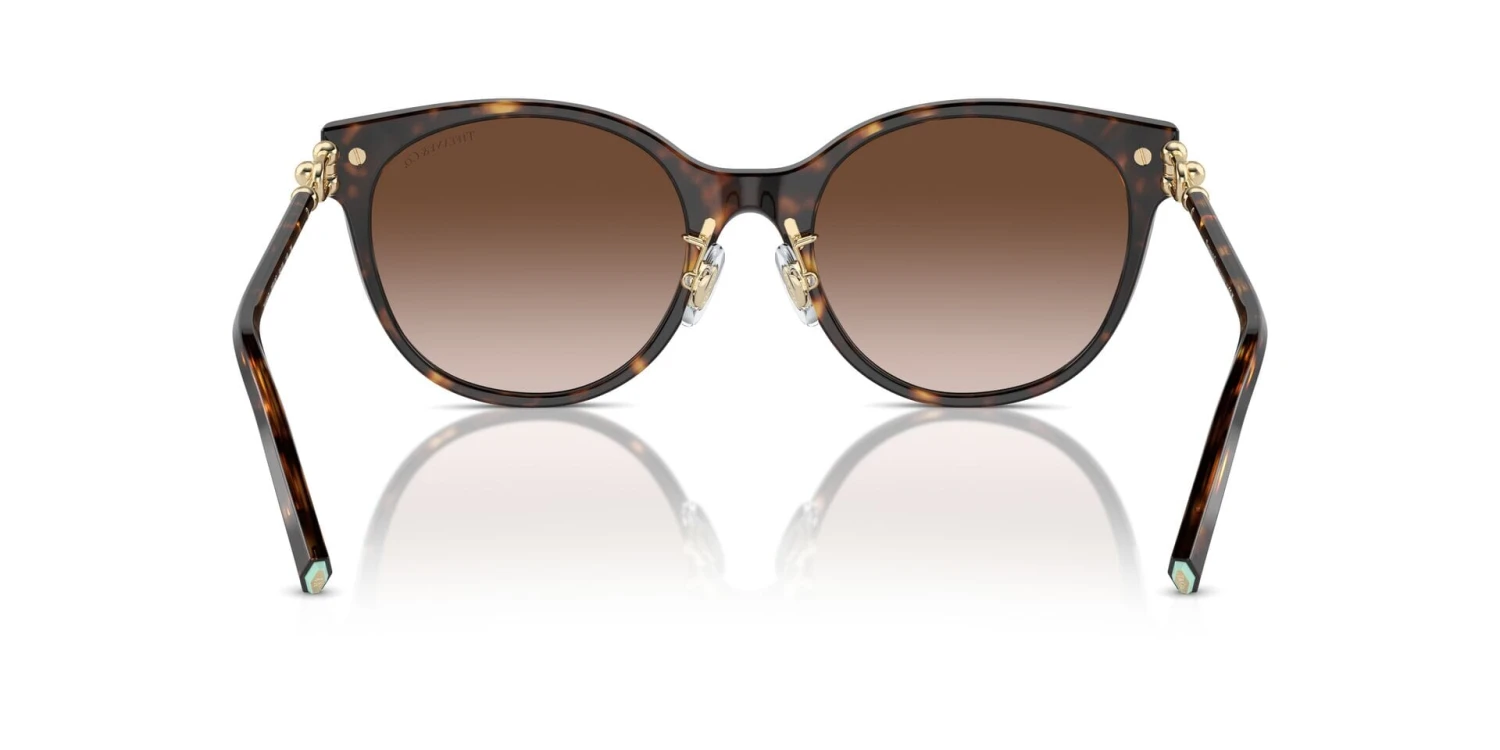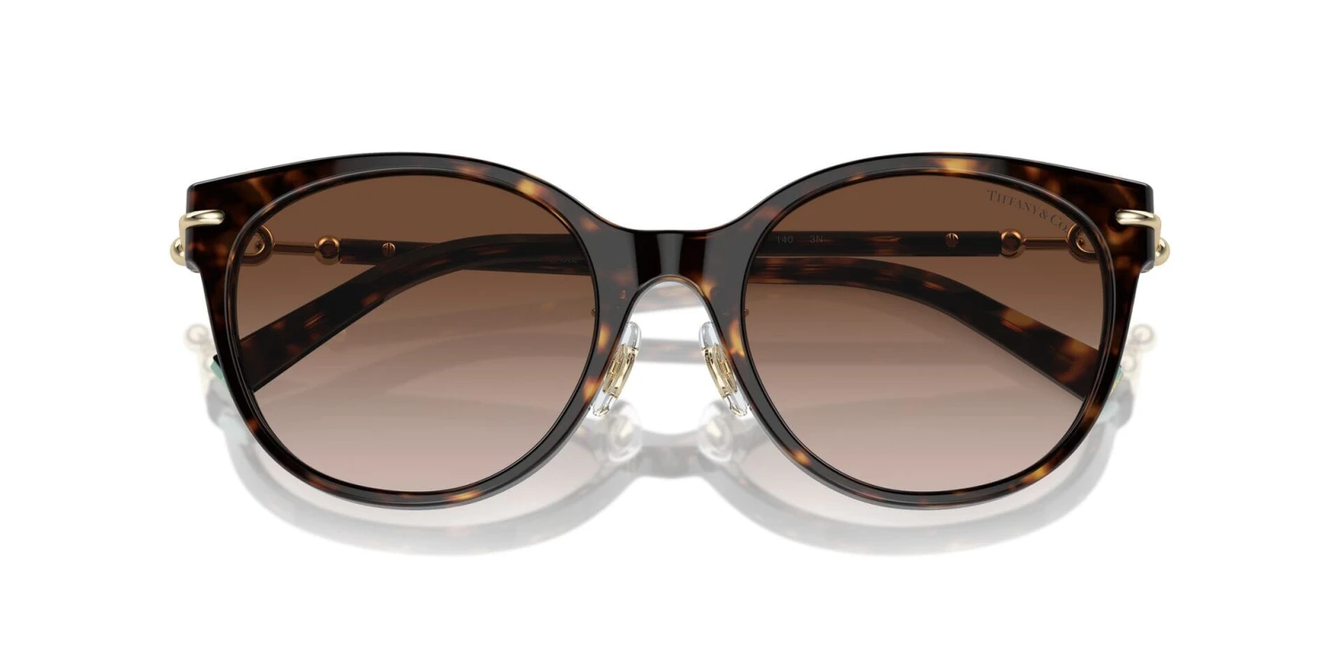 This cat eye Tiffany sunglass comes in a havana frame with brown gradient lenses.