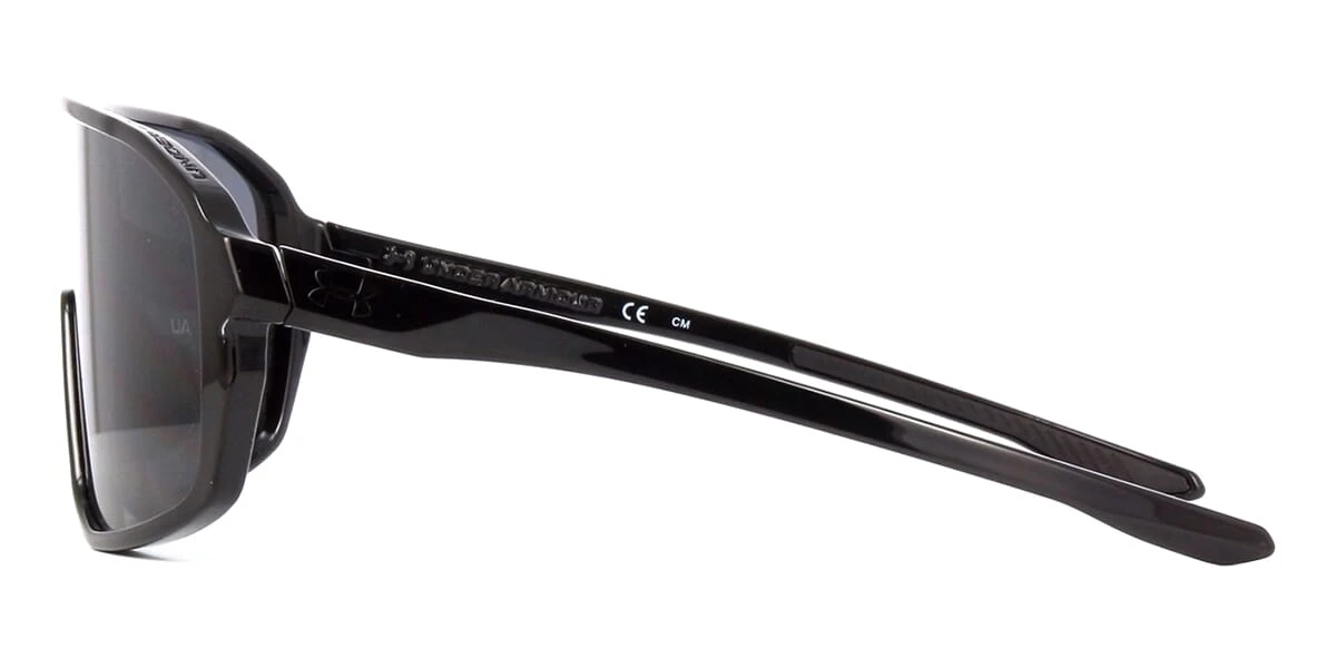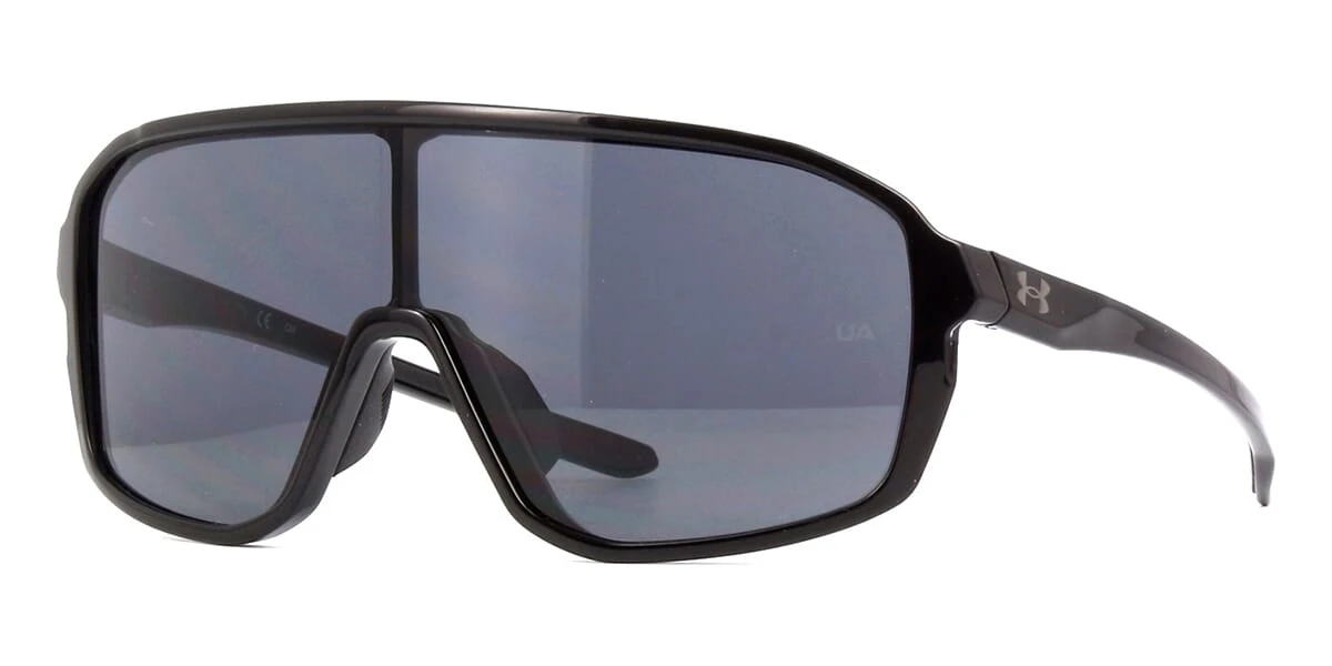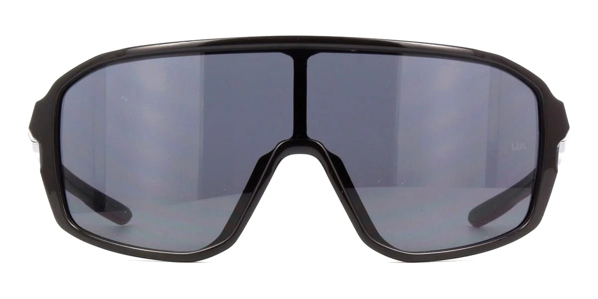 This shield Under Armour sunglass comes in a shiny black frame with grey oelophobic lenses.