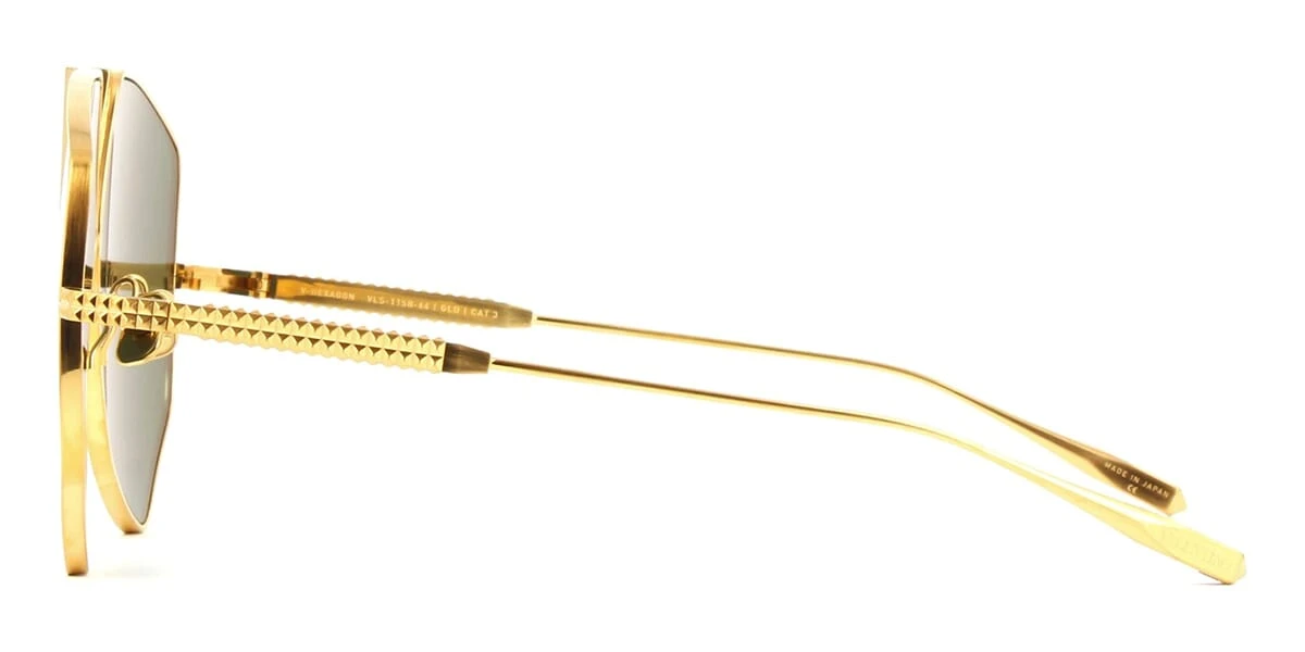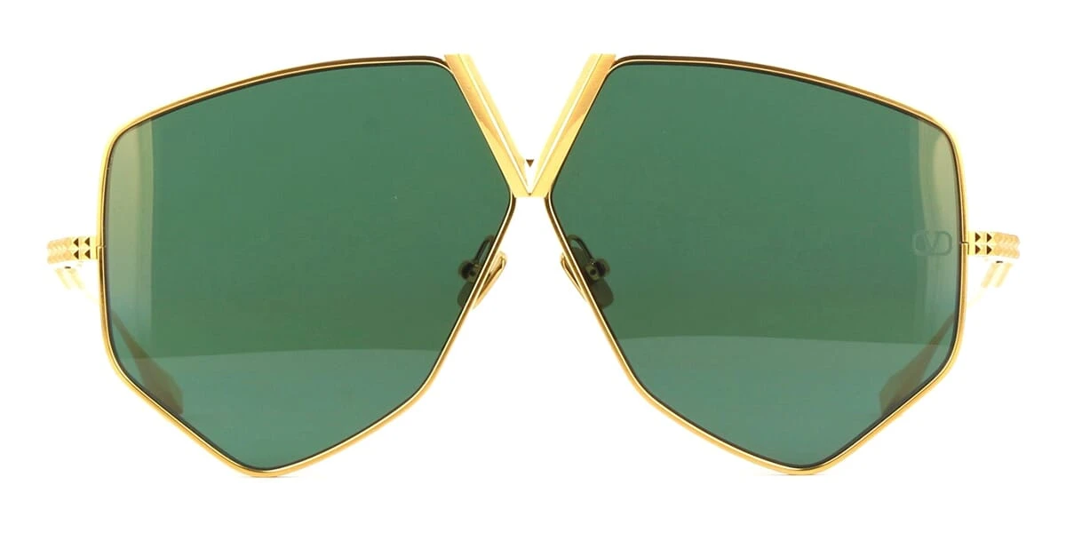 This aviator Valentino sunglass comes in a shiny light gold frame with grey gradient lenses.