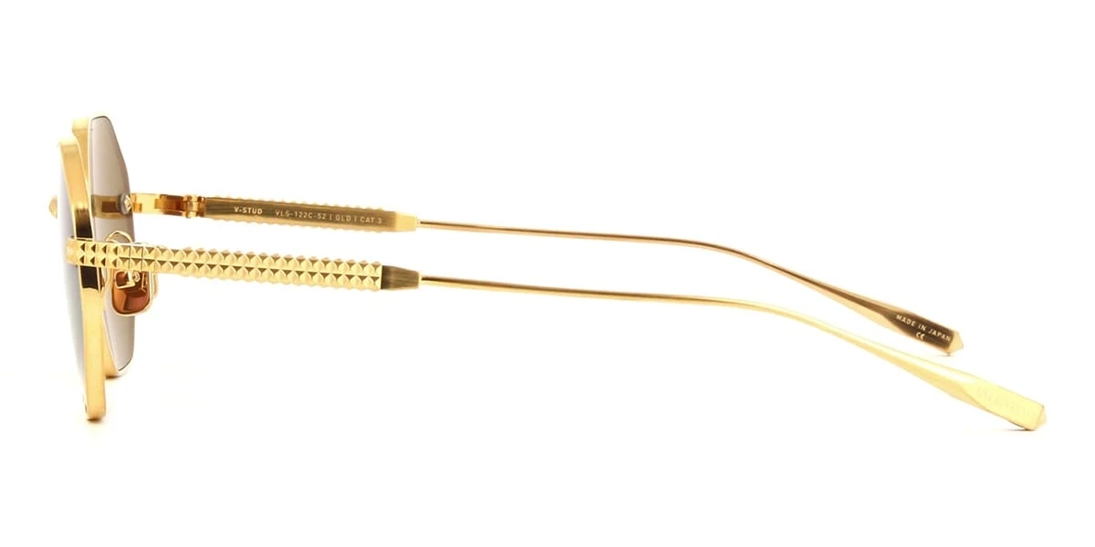 This square Valentino sunglass comes in a shiny gold frame with brown with light mirror lenses.
