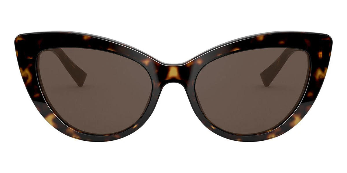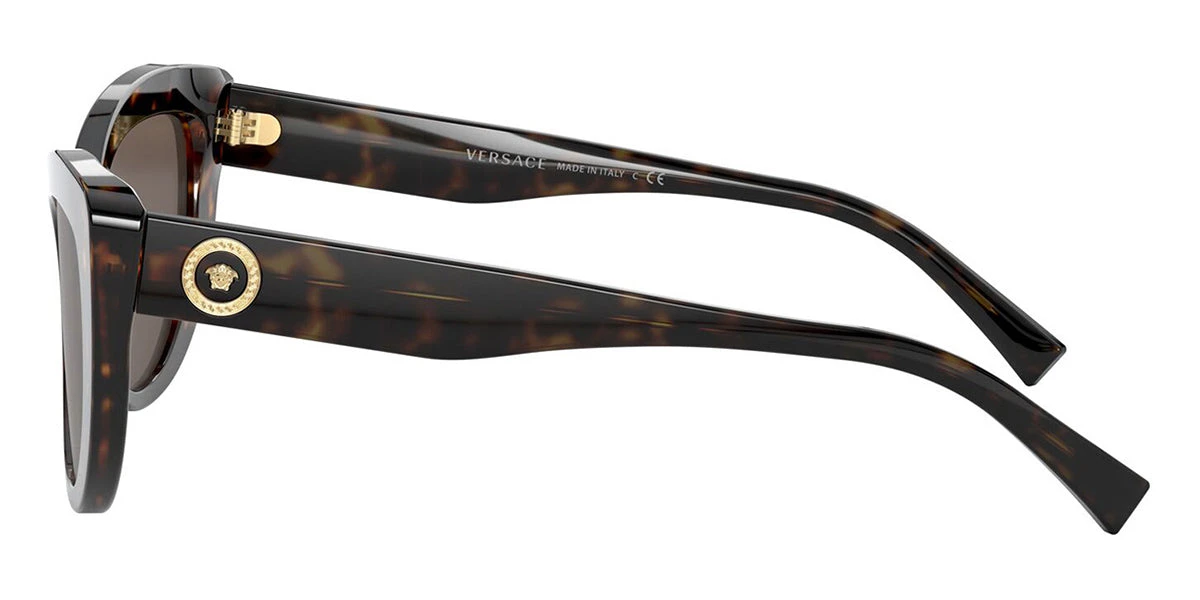 This butterfly Versace sunglass comes in a dark havana frame with brown lenses.
