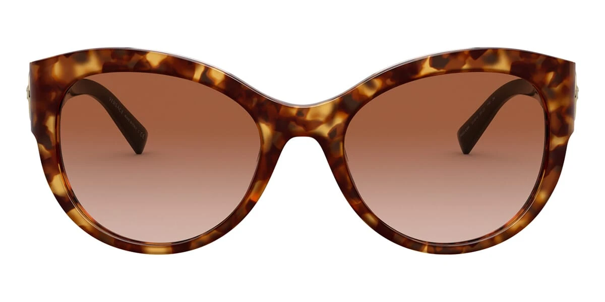 This round Versace sunglass comes in a havana frame with brown gradient dark brown lenses.