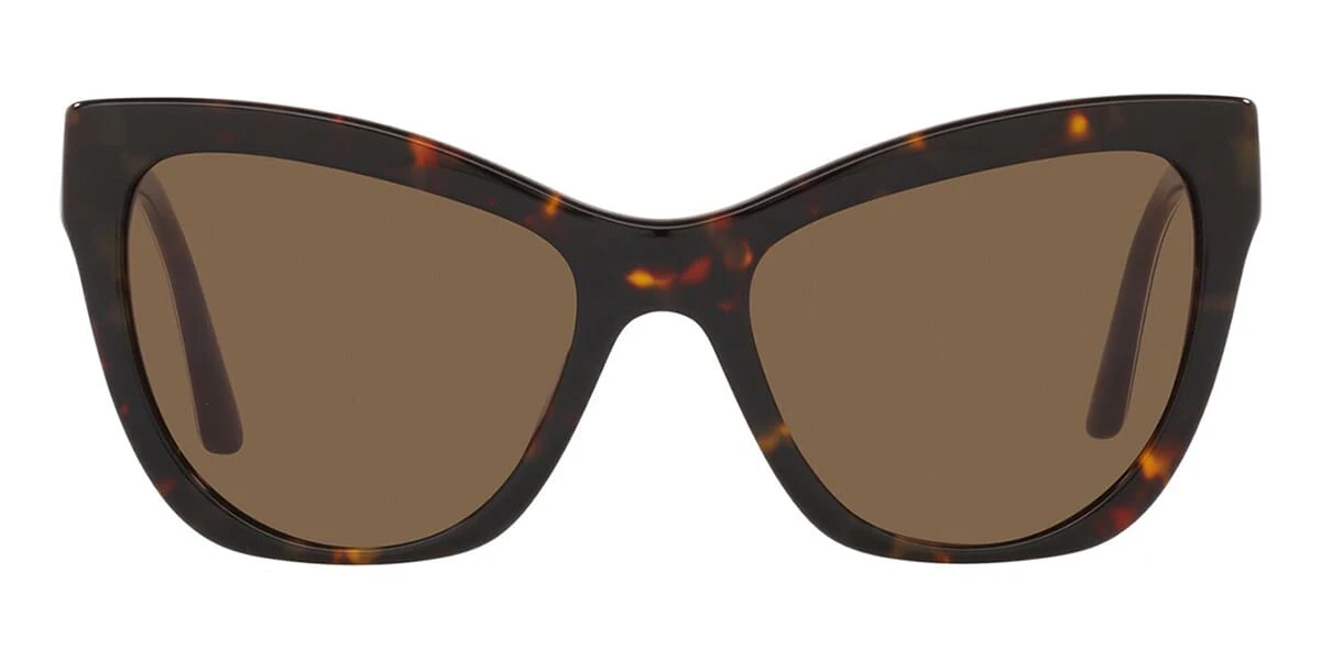 This cat eye Versace sunglass comes in a havana frame with dark brown lenses.
