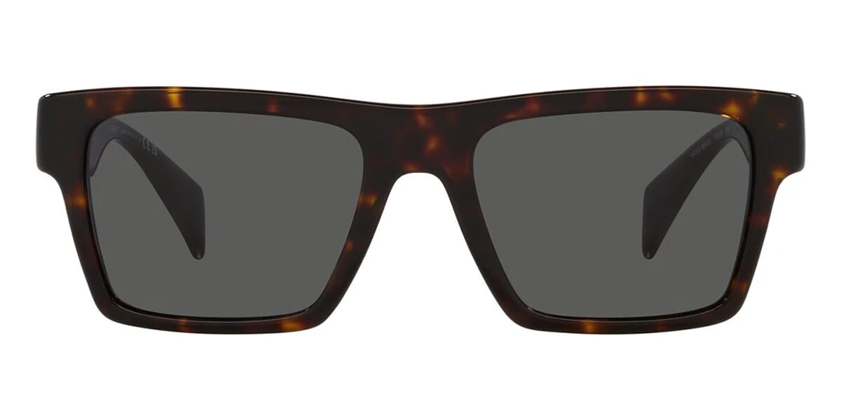 This rectangular Versace sunglass comes in a havana frame with dark grey lenses.