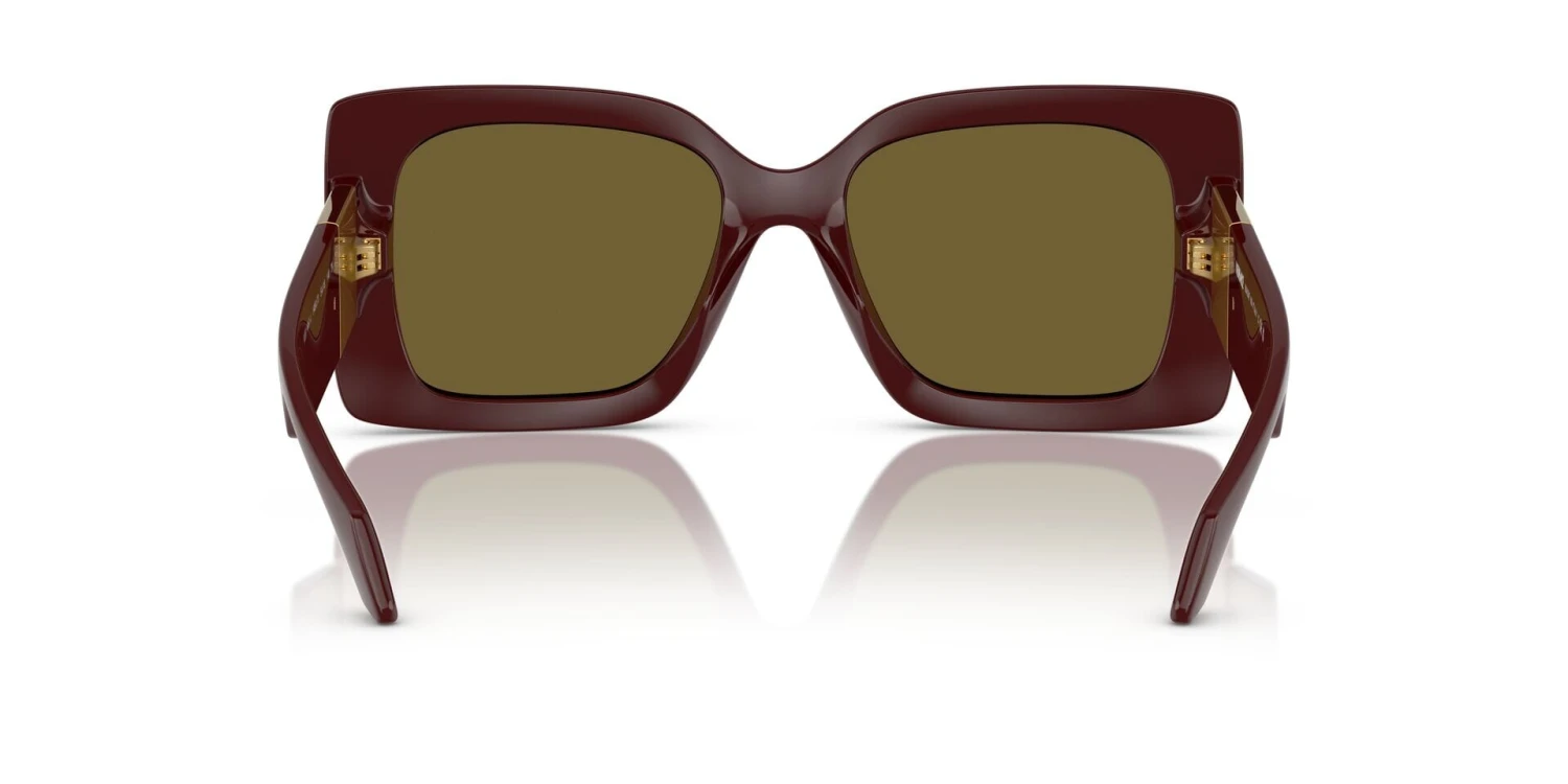 This butterfly Versace sunglass comes in a dark ruby frame with dark grey lenses.