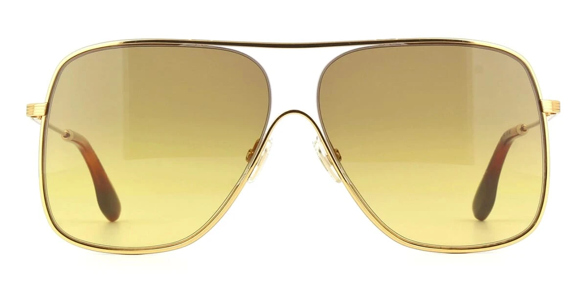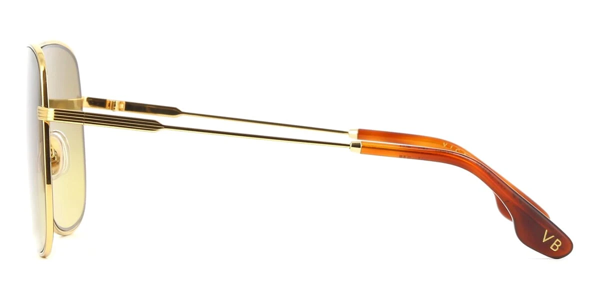 This square Victoria Beckham sunglass comes in a shiny gold frame with brown gradient with light mirror lenses.