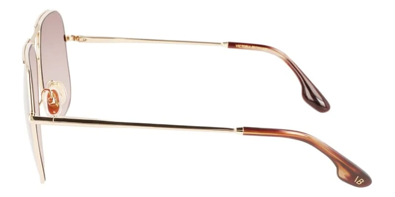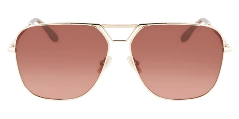 This square Victoria Beckham sunglass comes in a pink gold frame with red gradient lenses.