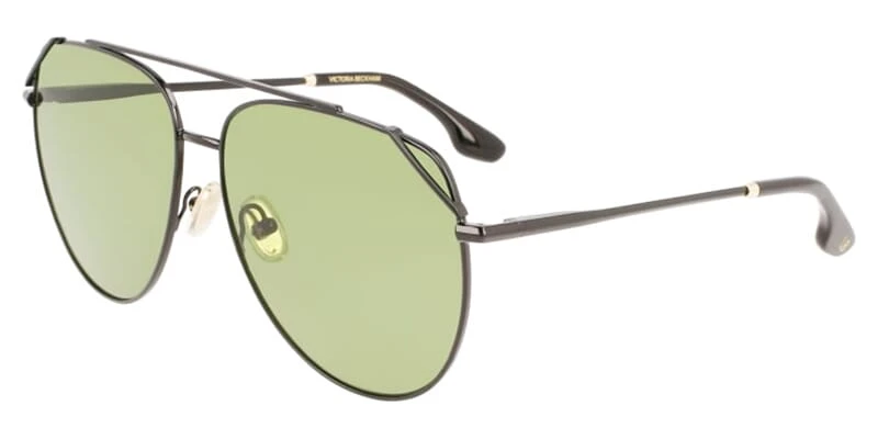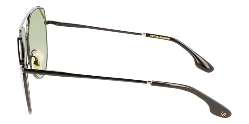 This aviator Victoria Beckham sunglass comes in a black frame with green lenses.