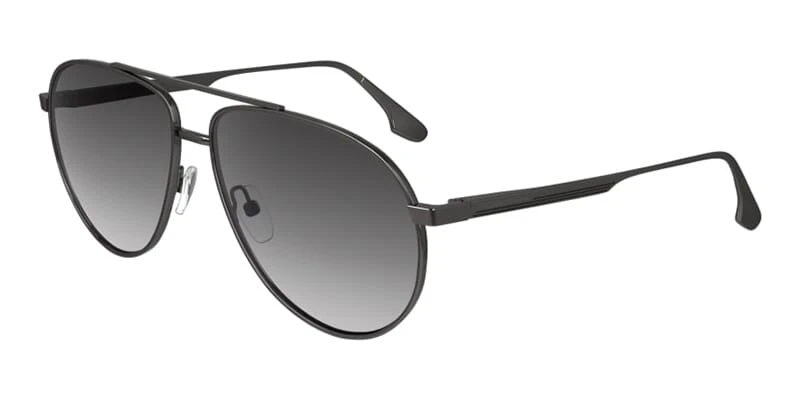 This aviator Victoria Beckham sunglass comes in a gun metal grey frame with grey smoke gradient lenses.