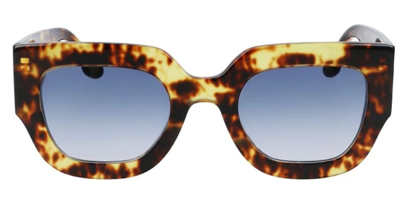 This square Victoria Beckham sunglass comes in a vintage havana frame with blue gradient lenses.