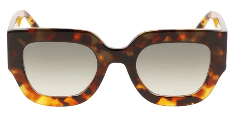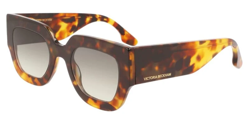 This square Victoria Beckham sunglass comes in a dark havana frame with grey gradient lenses.