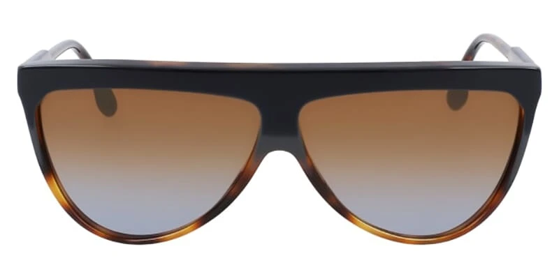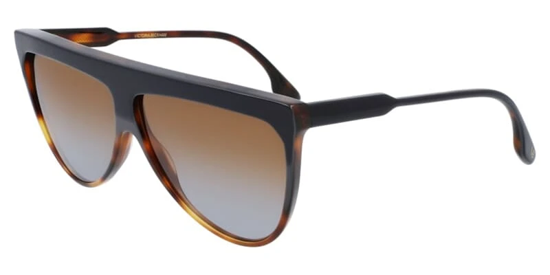This cat eye Victoria Beckham sunglass comes in a black and tortoise frame with brown gradient lenses.