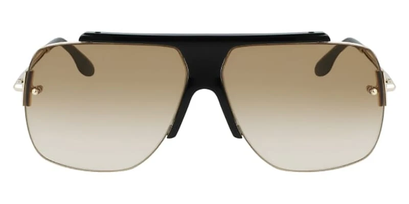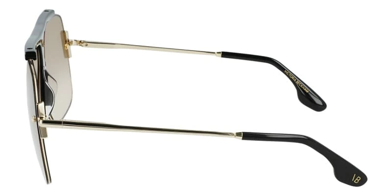 This square Victoria Beckham sunglass comes in a black and gold frame with brown gradient lenses.