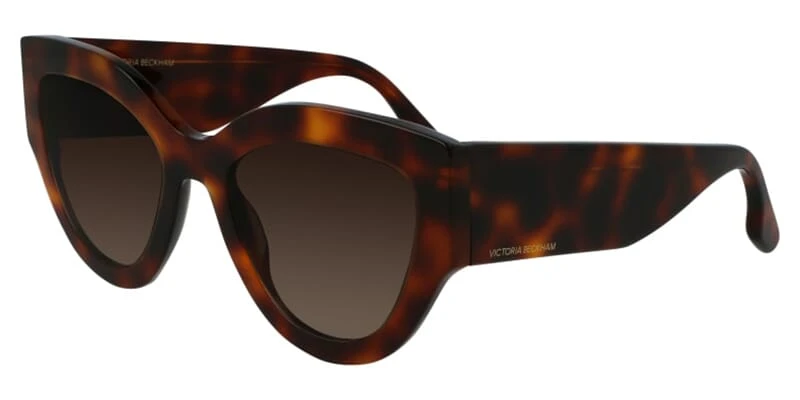This cat eye Victoria Beckham sunglass comes in a tortoise frame with brown gradient lenses.